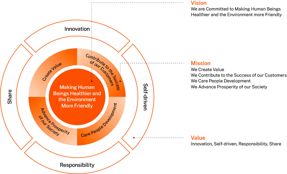 • Foresightedness and enterprising spirit, Sustainable change, innovation and breakthrough